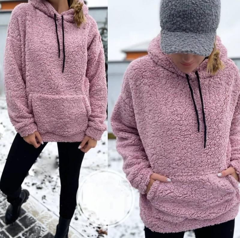 Арт 207 Тканина: хутро Тедді на трикотажній основі Розмір: 42-44, 46-48 Колір: пудровий, чорний, молочний, рудий М'який, теплий, приємний до тіла худі, з капюшоном та кишенею кенгуру.