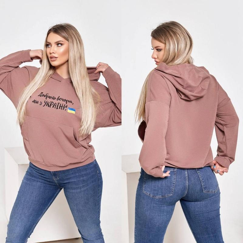 Худі 🥰 Мод: 386 BE📍 Виробник Одеса Худі з написом на грудях, доповнений капюшоном та кишенею-кенгуру Тканина: двонитка Розмір: 42-46, 48-50, 52-54, 56-58 Кольори: джинс, жовтий, капучино, чорний Довжина кофти - 64 см., рукав від горловини - 71 см. р.42-46 ОГ: 100 см. р.48-50 ОГ: 108 см. р.52-54 ОГ: 114 см. р.56-58 ОГ: 120 см. Розтяжність + 4см. При виборі розміру необхідно враховувати вільний фасон виробу 🛒ВІДПРАВКА протягом 3-7 робочих днів‼️ вартість 590 грн