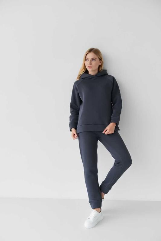 Худі подовжене, вільного крою, з розбірками по бічних швах, що візуально витягує силует