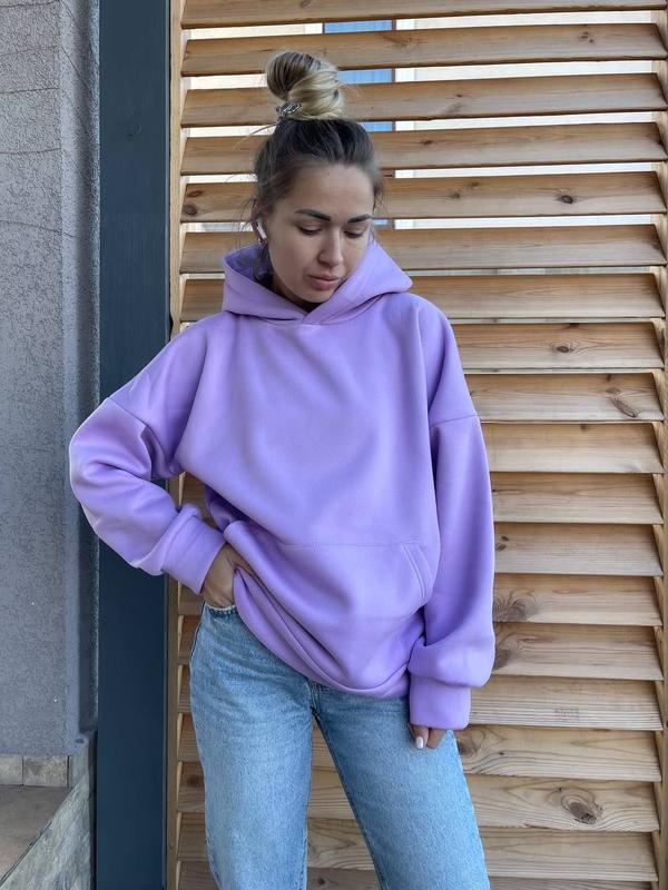 💞💞💞 в наличии💞💞💞 Худи Арт: 0393 Ткань: трехнить с начесом( производство Китай) Размер:42-44 Цвет: черный, лаванда Цена:650 грн Худи свободного кроя, с начесом. Капюшон двойной.