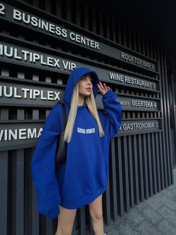 Худи оверсайз, который ты искала 🔥 Фото реал ▪️Размер 42-46 ▪️Ткань - трехнитка на флисе ▪️Цвет - красный, синий Объемные худи в трендовых цветах ✔️ худи заряжены на «good vibes” 💓