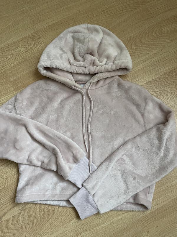 Теплое укороченное худи, размер S, цвет пудра, на фото бледнее
