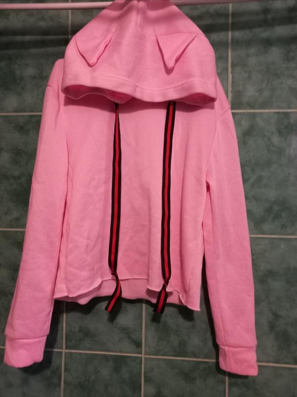 Кофта з вушками Ніжно рожевого кольору Тепла . Всередині є фліс Розмір: S-M В плечах: 43 см ПОГ: 51 см Довжина: 49 см Довжина рукава: 58 см