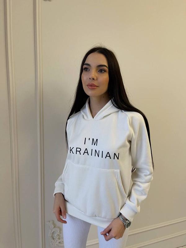 ▪️ Худи на флисе женский партиотический «I am Ukrainian» pu250 (жен) Цена - 470 грн Размер жен -42-46 Тканина - трьохнитка ФЛІС Цвет - черный, белый #кофта #худи #толстовка