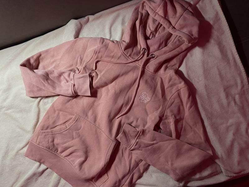 Худи Материал: хлопок Цвет: розовый Декор: вышивка Длина: 60 см Грудь/талия: до 100 см Рукав: 60 см Нюансы - катышки и едва заметные пятнышки под капюшоном (последнее фото)