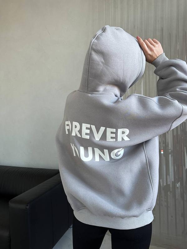 🥰Новинка Forever young 💔«Вечно молодой» 🏷️ Цена 980 грн ▪️Модель: 351 ▪Ткань: Дорога Турецкая трехнить «ПИНЬЕ»( мягкая, теплая, не кашлатится, не линяет), манжет на рукавах и внизу из кашкорсе. ▪️Цвет: серый, черный ▪️Размер: 42-46 универсальный Девочки это просто в самое серденько 💔 _Удлиненное худи с двойным капюшоном, пошит из качественной ткани и отличный принт.ботин
