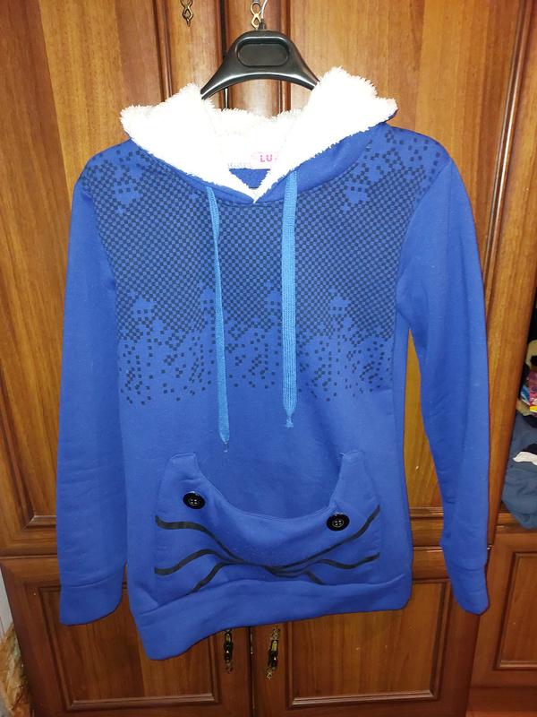 Теплое худи насыщенного синего цвета. С капюшоном и ушками и карманом. В хорошем состоянии. Классный вариант на холодную весну или осень. На бирке размер L, но в реале идет на ХC, C. Заміри при потребі надам. Смотрите другие Мои объявления 💫