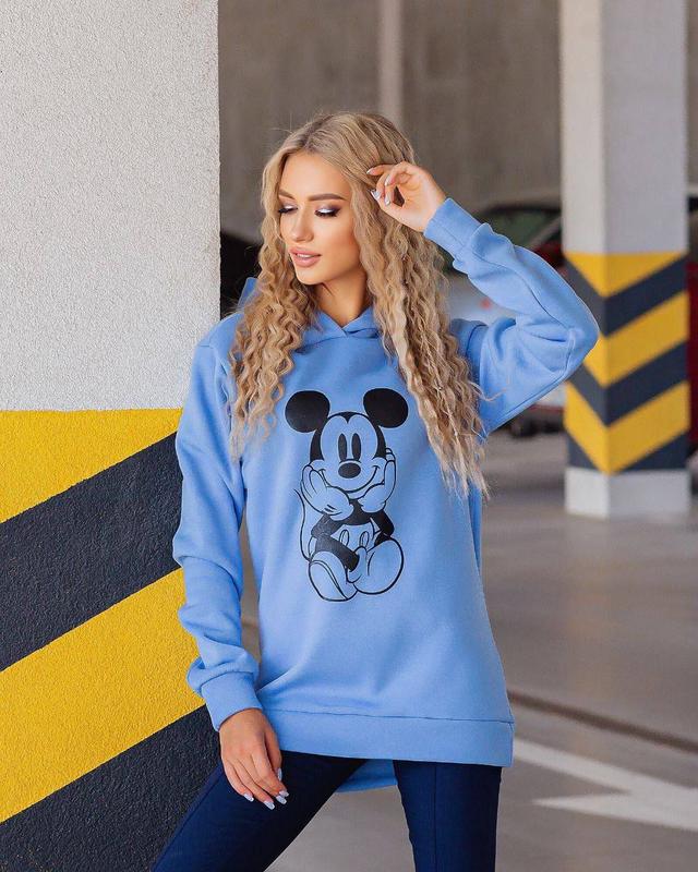 Код. 1905 Ткань: трехнитка на флисе Цвет: синий, белый, голубой, фрез Размер-универсал (42-46) Длина изделия 68 см Длина рукава 63 см