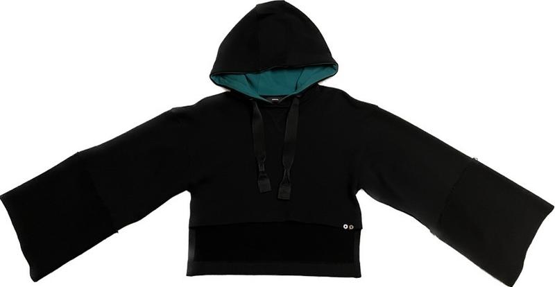 Чрезвычайно крутое укороченное женское худи с продленной спиной DIESEL оригинал, оверсайз, цвет черный