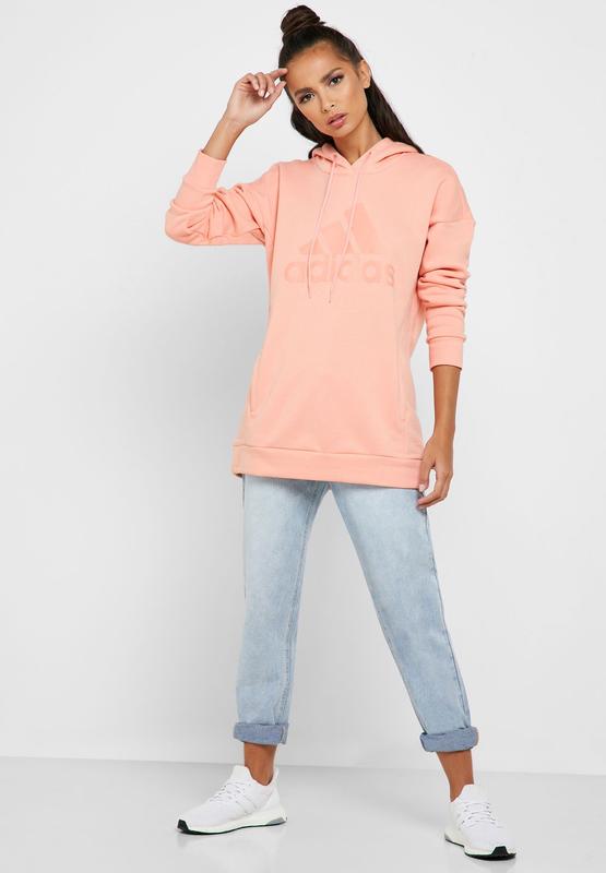 Удлиненная кофта худи свободного кроя красивого персикового цвета Adidas размер 16-18. В очень хорошем состоянии. Тканевая ткань комбинированная 77% хлопок, 23% полиэстр, не тянется. Замеры груди 60см, низ 58см, длина от плеча 71см