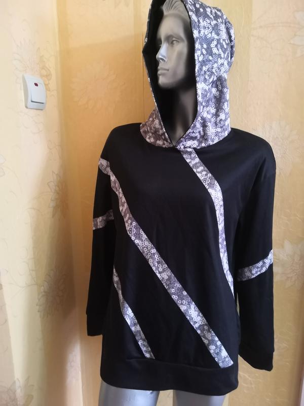 Худи. Размер - указанный 3xl, но маломерит на L/XL. Полуобхват груди - 54 см. Полуобхват талии - 54 см. Напівобхват стегон - 55 см. Плечи - 53 см. Длина рукава - 56 см. Длина всей вещи - 65 см.