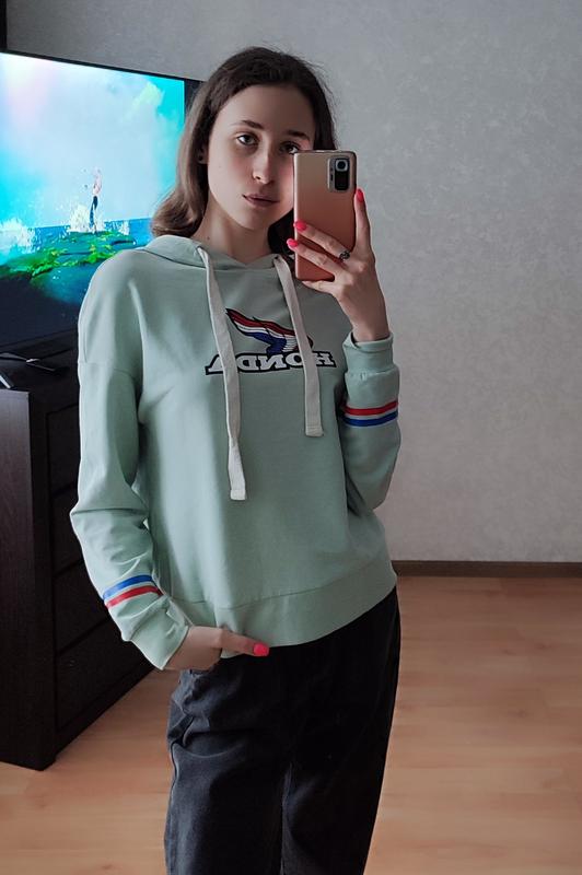 Худи. Фірма "Goldi " Размер 34. ОПГ - 48 см. Длина от плеча - 54 см Длина рукава от плеча - 45 см. Ширина знизу - 49 см. Состав: 82% хлопок, 15% полиэфир, 3% спандекс. Стан - идеальный.