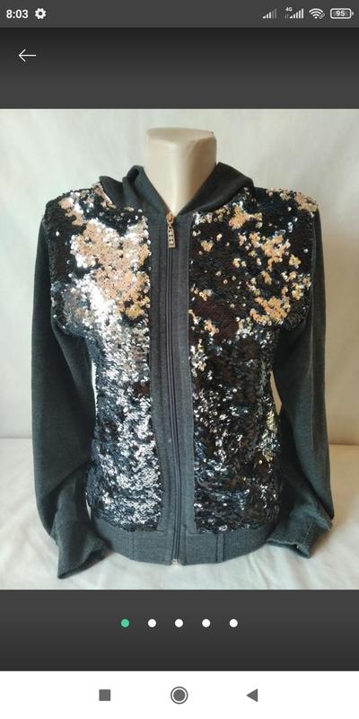Олимпийка с капюшоном doffbi в пайетках Размер по бирочке на 14 лет Подойдёт на взрослый XS-M Без дефектов, но местами нужно почистить По всем дополнительным вопросам обращайтесь в любое время