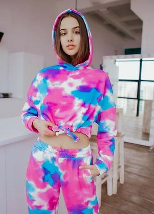 -має укорочений крій; - капюшон вшитий; - Рукави фіксуються манжетом; - на талії регулюється за допомогою шнурка; Матеріал: турецький футер "петля"; Склад: 80% бавовни, 20% еластану; Розміри: XS-S, M-L.