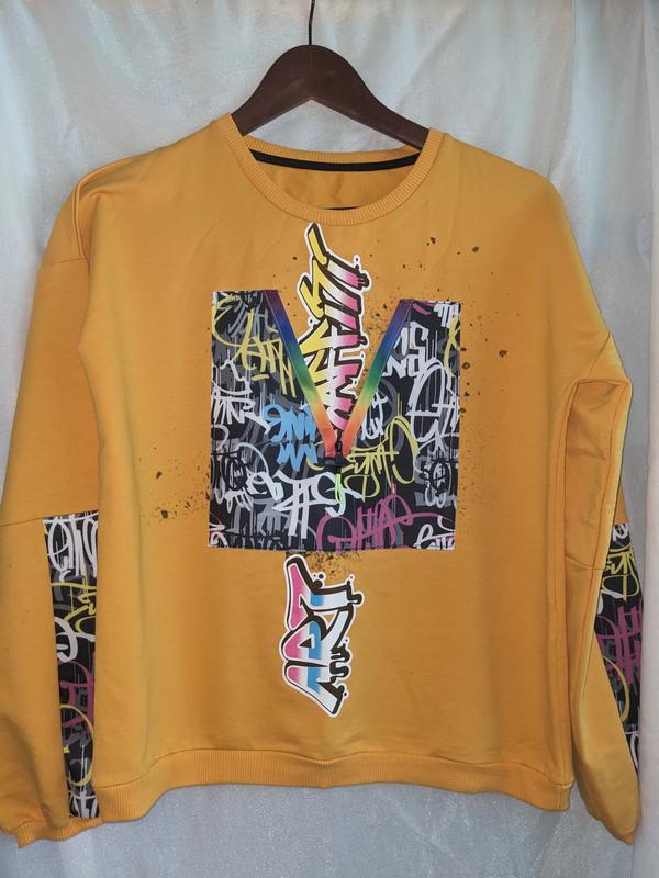 Супер яркое коттоновое худи, в идеальном состоянии, немного оверсайз и немного укороченное, с приспущенным плечом. Виробник Туреччина. .Состав:70% бавовна,25 % полиестер,5% элостан.(пог-54см, поб-46см,длина-57см,длина рукова -47см,плечи -20см.) розмер не вказан.Дуже красивого сонячного яскравого кольору худи. Будет шикарным акцентом в вашем осеннем образе