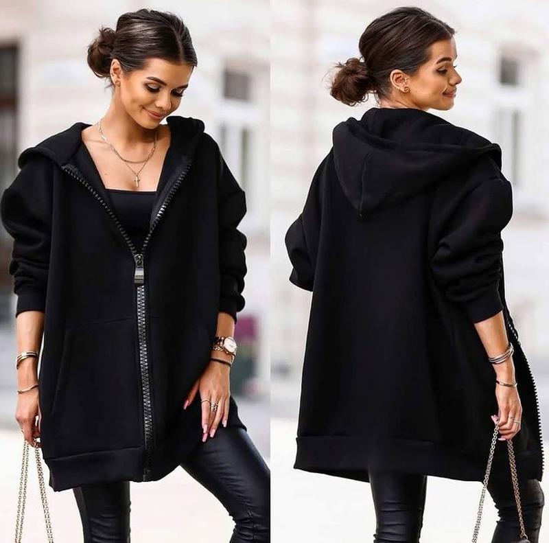 Удлиненное худи на молнии с капюшоном... мод. 834 Ткань: трехнитка на флис Размер: 42-46, 48-52 Цвет: черный, графит, бутылка
