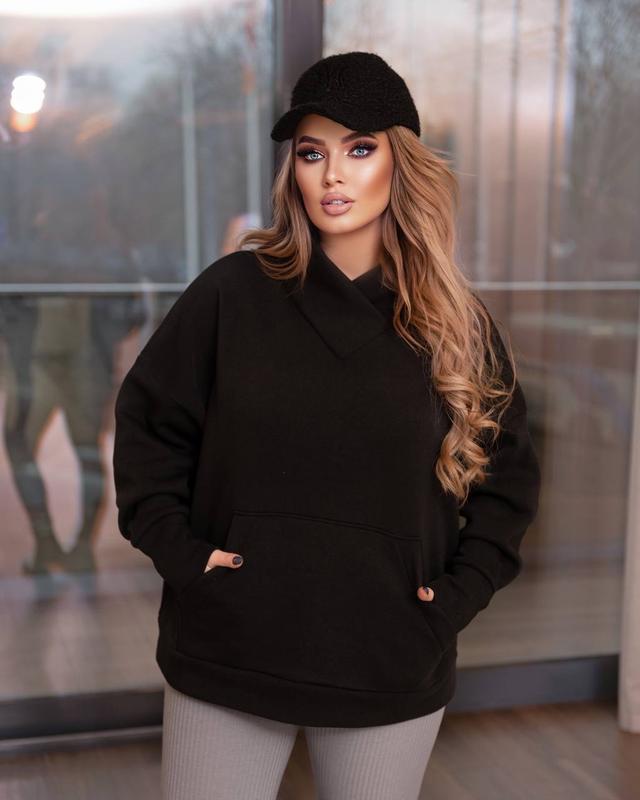 Худи Номер : 434 Цена : 630 грн Ткань : трехнить на флисе ( мягкая ) Цвет : чёрный Размер : 48-52 , 54-58 Примечание : тёплый худи с комфортным горлом-стойкой на запах и митенками ( манжеты с отверстием для пальца,)как раз актуально для холодного времени года .