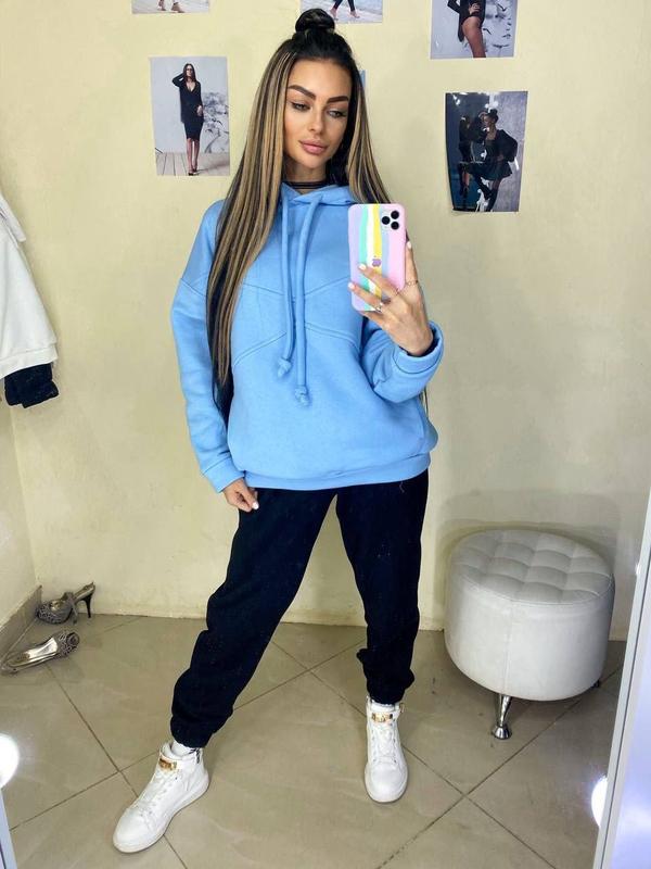 Худі на флісі з декоративними швами. Розмір Oversize Колір - 💎блакитний Країна виробник Україна🇺🇦