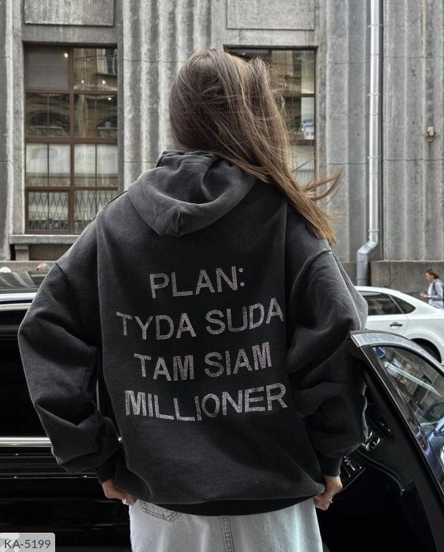 мод.шоп.11.10 соХуди KA-5197 Мод.005 Размиры: 42-44, 46-48 Ткань: трехнитка на флисе хорошего качества. Надпись из камней. Цвета: черный, графит, мокко Замеры: ОГ - 124 см. Длина рукава от шеи 72 см Длина по спинке 67 см