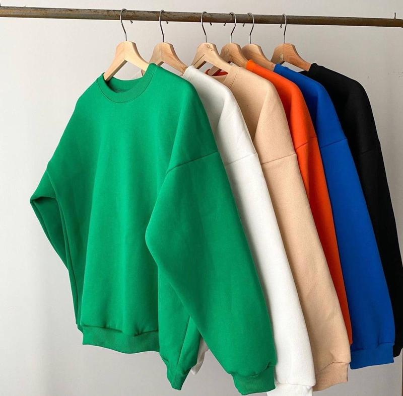 Получали в количестве❣️ Хит продаж🔥 🔺Оверсайз-свитшот модель 2322 ткань: качественная трехнитка НА ФЛИСИ цвет: черный, белый, бежевый, зеленый, оранжевый, электрик, малиновый размер: 42-48 (оверсайз) Тренд этого сезона🔝 Семь ярких цветов🌈 Стильные укороченные свитшоты Oversize кроя это MUST HAVE💥 Манжеты из основной ткани. Высокое качество пошива. Замеры: ОГ 112 Длина 50 см Рукав от ворота 74 см