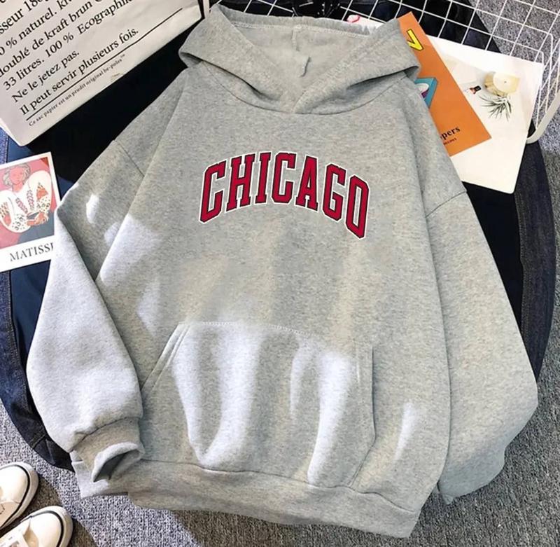 моМягкий, теплый худи на флисе с надписью « CHICAGO”🧨🧨🧨 Модель: 169 Размер: 42-44; 46-48 Ткань: трехнить на флисе Цвет: серый, белый, электрик; черный