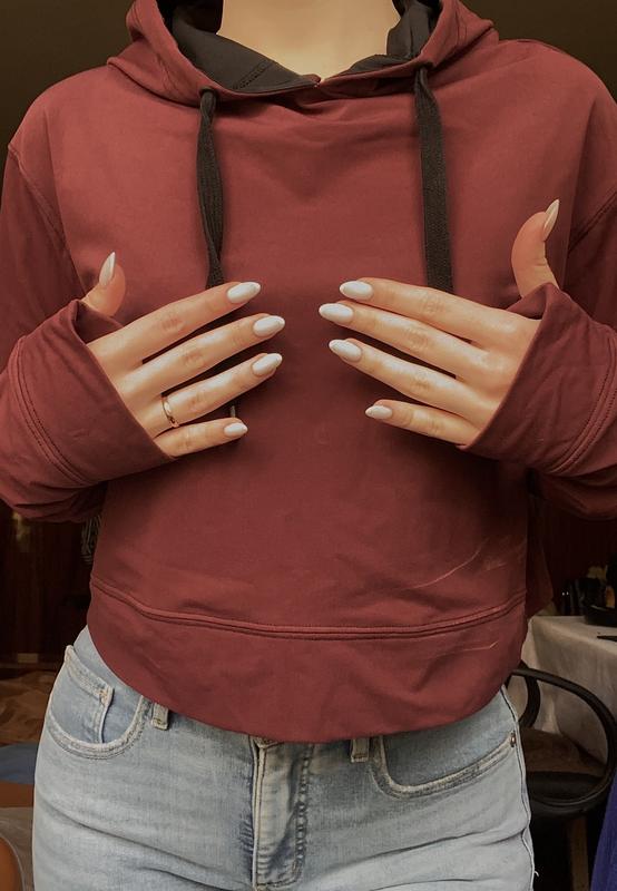 Есть вырезы на рукавах для пальчиков. Подойдет для девушек небольшого роста. Мой рост 154