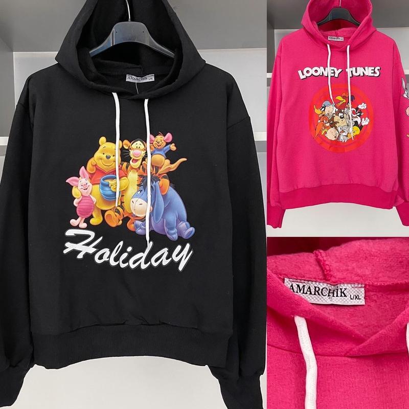 Цена 350грн🔥🔥🔥 Новые🖤Худи с рисунками❤️ На тоненькой байчке, Котон Производитель Турция. Два цвета❤️🖤 Размеры: С-М, Л-ХЛ С-М: пог 50, рукав от воротника 67, длина 52 Л-ХЛ: пог 51, рукав от воротника 68, длина 52 Маломерит!!️