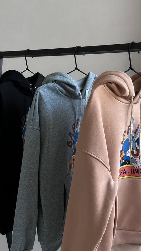 ХІТ ПРОДАЖІВ🔥 ФОТО РЕАЛ🔝 🔺Худі Oversize “Looney Tunes” Цена: 620 грн🥥 модель ba 2326 ткань: качественная трехнитка НА ФЛИСИ цвет: черный, меланж, бежевый размер: 44-48 (оверсайз) Крутые утепленные худи кенгуру Oversize кроя с трендовым мультяшным принтом «Loony Tunes»🔥🔝 Манжеты из основной ткани; глубокий капюшон, шнурочки. Качество🔝 Замеры: 42-48 ОГ 118 см Длина 65 см Рукав от ворота 73 см