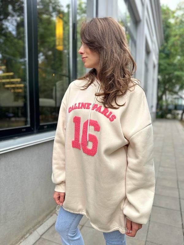 Круті утеплені худі «16»🔥 Мод: 980 Колір: рожевий, блакитний, айворі Розмір: уні 42-46 Тканина: трикотаж на флісі Довжина 69см Ціна 550 грн