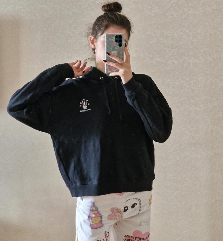 есть маленькая вышивка, фото 3 состояние: новый размер: л одет на рост 183 (параметры 85-60-93) цвет: черный, зеленая полоскашка по рукавам и капишоне замеры: полуобхват груди: 61см рукав от горловины: 75см длина: 58см