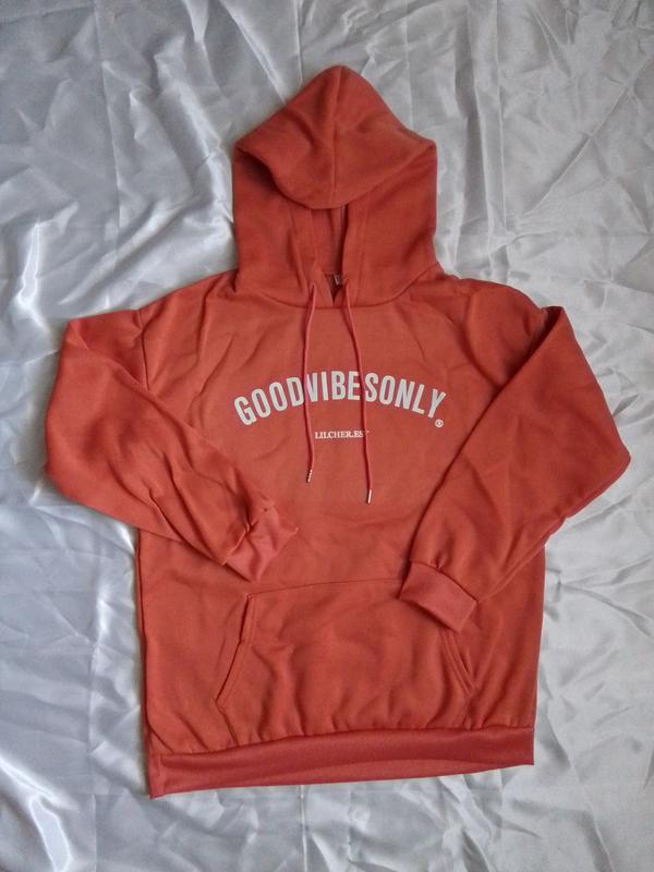 Оранжеве тепле худі на флісі, довжина від плеча 68см, ПОГ 56см. Молочна кофтинка з коричневими рукавами та котиками. Довжина сзаду 45, спереду 47см, ПОГ 40-47 см, тканина щільна але добре тягнеться.