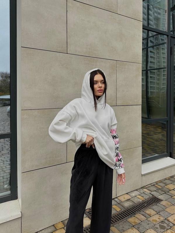 Арт 851-793 Цена 850 грн Худи ⠀ Ткань: трехнитка на флисе и качественный накат 📐Размер: 42-46 (универсальный) 🎨Цвет: молоко