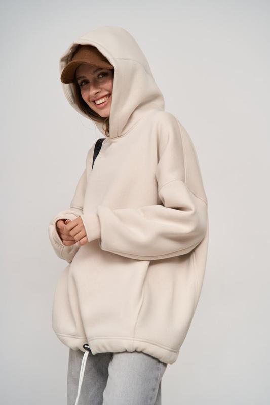 Є післяплата та обмін Худі зі капюшоном вільного крою в єдиному розмірі, манжети з рібани, опущене плече, є бічні кишені, капюшон подвійний, по низу шнурок з фіксатором Тканина трьохнитка на флісі, турецького виробництва, преміальної якості пенье Не кошлатиться, відмінно тримає тепло в холодну пору року Заміри: Ширина грудей 80 см Рукав від горла 78 см Довжина 70 см 49033