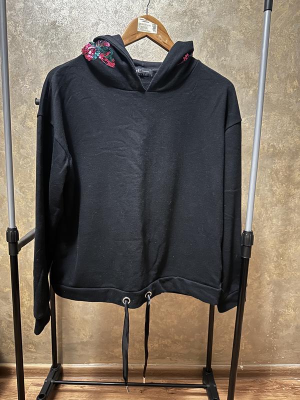 Очень классное худи с пайетками на капишоне, по низу можно завязать и сузить. Размер м(подойдет на л) Длина 56см Пог 60см Рукав 52см Плечи 62см Состояние очень красивое