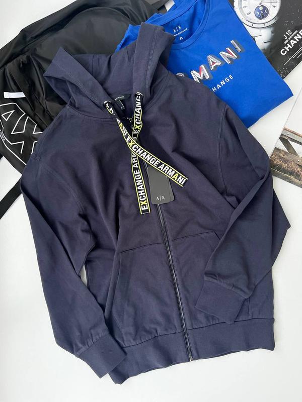 Худи женское Armani Exchange Оригинальный Размер : XS (болеемерит на S) Цена 2200 грн Цвет: синий Состав ткани: 100% хлопок Замеры: XS: Плечи 49,5 пог 52, ширина внизу 41, длина 65, рукав от воротника 69 см