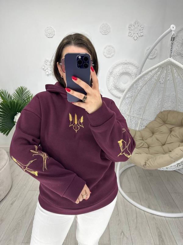 Худи Модель 021VK Размеры : 42-44,46-48,50-52,54-56,58-60,62-64 Ткань : трехнитка хорошего качества Цвета: черный, малина, марсал, джинсовый, графит, фисташка, хаки, пудра, бежевый Худи с глубоким капюшоном, рукава и низ худи на манжете; машинная, качественная вышивка на рукавах и на груди Параметры модели-батал ОГ108, ОТ86, ОБ110, рост 165см, на ней представлен размер 50-52; параметры модели-норма ОГ90, ОТ65, ОБ95, рост 170см, на ней 42-44 Замеры изделия: Размер 42-44: Объем груди 96 Объем талии 92 Длина рукава 49 Длина худи 62 Размер 46-48: Объем груди 108 Объем талии 106 Длина рукава 52 Длина худи 63 Размер 50-52: Объем груди 120 Объем талии 108 Длина рукава 52 Длина худи 66 Размер 54-56: Объем груди 128 Объем талии 114 Длина рукава 54 Длина худи 68 Размер 58-60: Объем груди 134 Объем талии 120 Длина рукава 55 Длина худи 69 Размер 62-64: Объем груди 140 Объем талии 126 Длина рукава 56 Длина худи 70