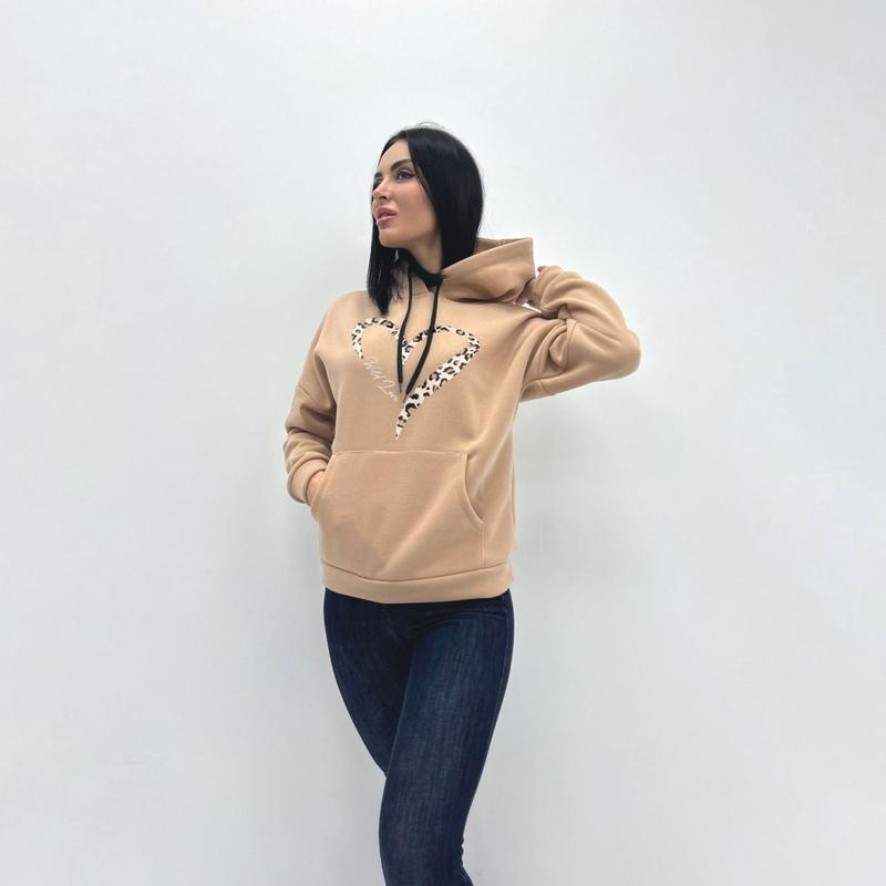 Это худи отличается оригинальным рисунком в виде сердца с леопардовым принтом, окруженной нежной надписью, придающей изделию изысканность и современность. Доступная в многообразии цветов, эта модель позволяет подобрать идеальный вариант для любого стиля и фигуры. Просторный крой не сковывает движения, а классический капюшон со шнурками и карман "кенгуру" добавляют функциональности. Манжеты на рукавах и по низу обеспечивают удобную посадку и удерживают тепло, делая худи "Amor" идеальным выбором для холодного времени года. Материал: трехнитка на флисе. Цвета: черный, бежевый, капучино, темно-зеленый, электрик, шоколадный, серый(меланж), графит. Размеры: 42-44; 46-48; 50-52. Замеры: длина по спине 64-67см; длина рукава от горловины 67-70см.