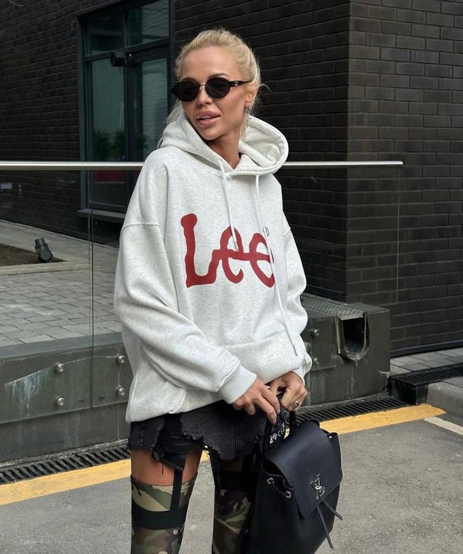 ☃️Теплые худи на флисе “Lee” Много продали – исключительно положительные отзывы👍 🔥Высококачественная накатка🔥 ➡️Цвет: Белый меланж (как на фото) ➡️Мод. 1159 ➡️Размер: 42-46 (oversized) ➡️Ткань: Трехнитка на флисе Замеры: на ОГ до 110см Длина 63см