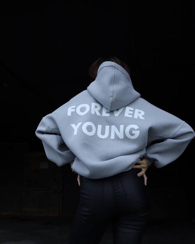 Арт 4936-351 Forever young 💔«Вечно молодой» 🏷️ Цена 1150 грн ▪Ткань: Дорога Турецкая трехнить «ПЕНЬЕ»( мягкая, теплая, не кашлатится, не линяет), манжет на рукавах и внизу из кашкорсе. ▪️Цвет: серый, малина и черный ▪️Размер: 42-46 универсальный Девочки это просто в саме серденько 💔 _Удлиненное худи с двойным капюшоном, пошитый из качественной ткани и отличный принт.