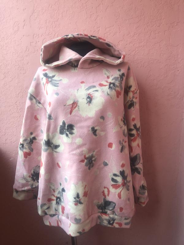 Теплый худи универсального размера, подойдет как на M, так и на L/XL (на фото манекен размера S). Полуобхват по груди - 66 см Длина - 69 см С капюшоном и манжетами, спущенное плечо. Ткань плотная, полушерстяная (не тянется) На весну может заменить легкое пальто.