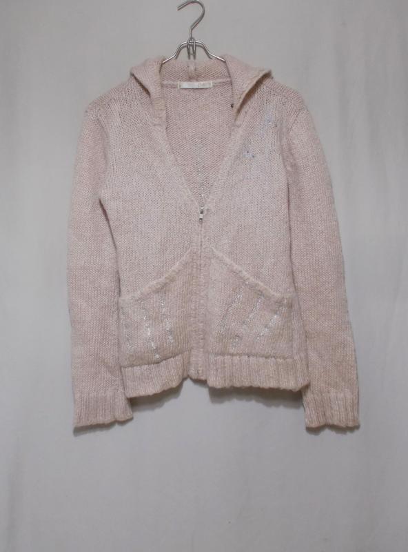 Худи в отличном состоянии. Трикотаж крупный, объемного плетения (360 грамм), мягкий и пушистый, нить с блеском персикового цвета. Высокий капюшон, открытая грудь, короткая молния, косые карманы, на карманах и спинке полосы из люрекса, слева на груди вышивка, на рукавах и по низу манжеты. Состав: 48% мохер, 19% акрил, 17% ПЭ, 16% нейлон (полиамид) Мерки (на бирке М): плечи - 45 см ПОГ- 45 см ПОТ 38 см низ - 46 см рукав - 64 см капюшон 37 см длина - 59 см