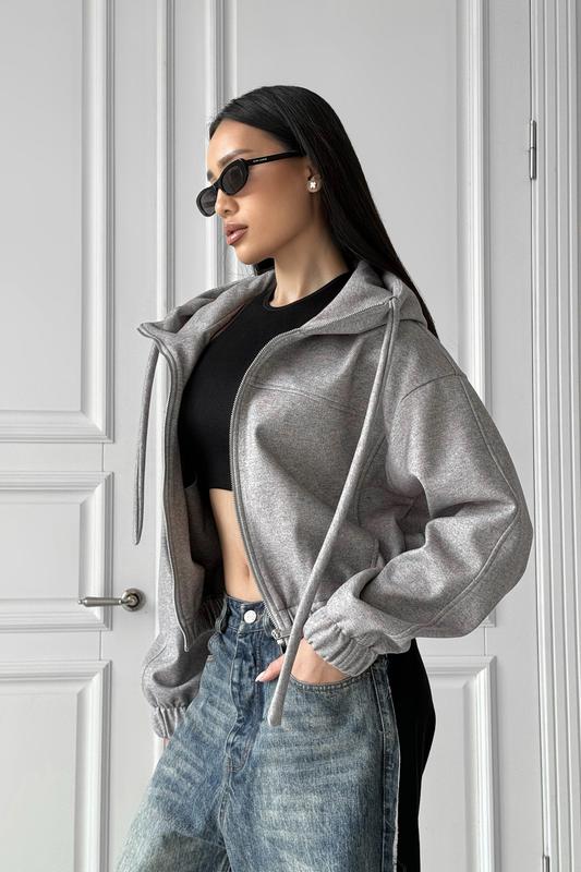 Укорочений куртка бомбер - основа сучасного стрітстайлу. Трендова модель бомберу з заниженою лінією плечей та капюшоном, який переходить у комір – стійку. По низу бомберу широка резинка. Доповнюють модель два зручних кармани по переду. Цікава та безперечно стильна модель буде доречно виглядати з брюками - палаццо, шкіряними брюками, рваними джинсами, а також короткими шортами або класичними спідницями будь-якої довжини. Модель без підкладки. арт.J000104 Тканина: італійський кашемір Алекс Склад: 75% вовна, 25% поліестер Колір: чорний, сірий, бежевий Розмір: XS-S, M-L, XL-XXL, Параметри моделі на фото: Зріст: 170 см, ОГ: 86 см, ОТ: 64 см, ОС: 93 см. На фото представлена модель розмір XS-S (42/44). Комплектація: куртка-бомбер Фактичні виміри по виробу: Об’єм по грудях: XS-S - 114; M-L-118; XL-XXL-122; Об’єм по талії (по талії резинка): XS-S – 74/84; M-L-78/88; XL-XXL-82/92; Об’єм рукава зверху: XS-S - 48; M-L-49,5; XL-XXL-51; Довжина виробу по спинці: XS-S - 52; M-L-53; XL-XXL-54; Довжина рукава: XS-S – 76; M-L-76; XL-XXL-76; Силует: вільний Рукав: спущене плече, втачний сорочковий рукав Застібка: блискавка Комір (горловина): капюшон з цільнокройною стійкою Кишені: в рельєфах