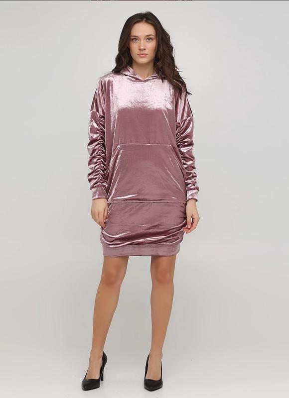 Велюрова сукня худі Reserved з капюшоном. В наявності розмір М. Рукави, капюшон і знизу з боків призібрано гумкою. Лінія плеча занижена. ПОГ 55 см ПОТ 51 см ПОС 51 см Ширина по низу 43 см Довжина 93 см