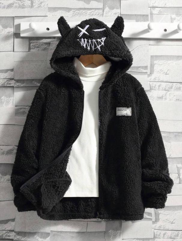 Новинка Худі Тканина: хутро Тедді на подкладі + вишивка Кольори: чорний Розміри: 42-46, 48-50 Теплий обʼємний худі на змійці з ріжками. На капюшоні якісна ВИШИВКА. Є кармани, що додає зручності. Можливо носити, як унісекс. roz