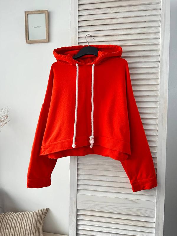 укороченное худи ZARA красного цвета. Размер с