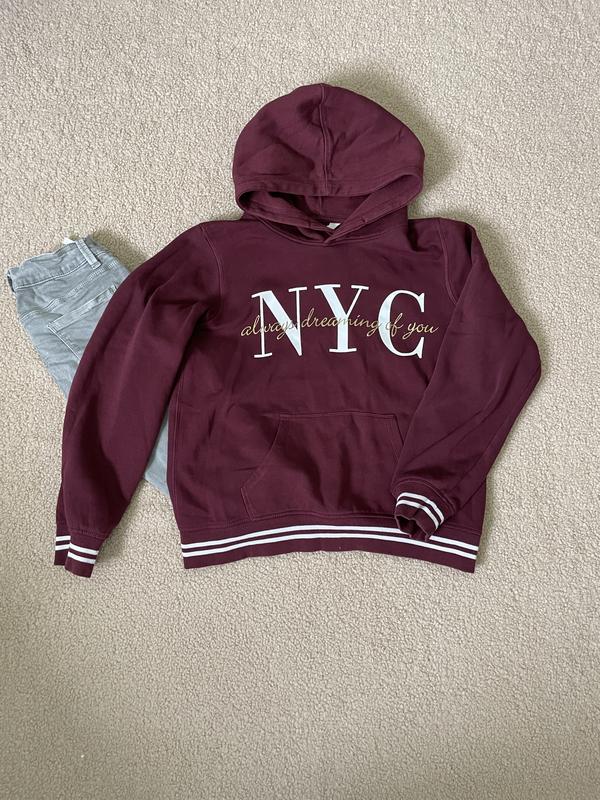 Худи с капюшоном бордового цвета с надписью на груди. Торг возможен. размер на бирке в карусели