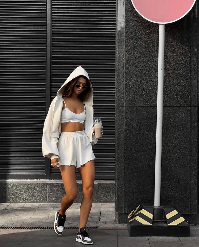 Идеально подходит на раннюю осень - Оверсайз и шорты с высокой посадкой👍 ➡️Размеры: 42-44, 44-46 ➡️Тканина: двохнитка люкс ➡️Цвет: серый меланж, молочный, черный, красный, хаки ➡️Длина шорт 38, высокая посадка