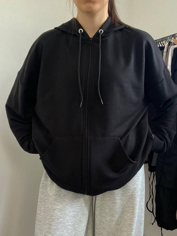 Фото реал ◽️Размер: 42-48 (оверсайз) ◽️Тканина: двохнитка ◽️Цвет: черный, серый ◽️ Сезон: Весна-лето Настоящий оверсайз 😎 Базовое худи с капюшоном на молнии. Вместительные карманы. Манжеты РИБАНА 👍‼️ Качественный пошив 🔥 Замеры 📐 Обхват груди 118см Длина от горла 67см Длина рукава 65см