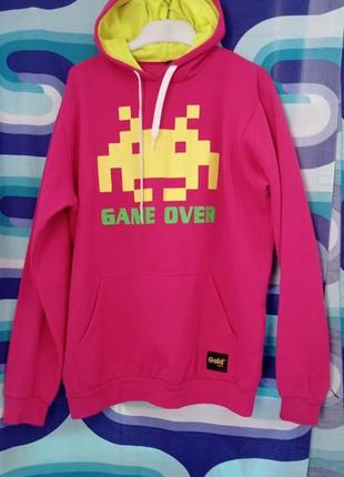 Светр худі кенгурушка з начосом з принтом Game over заміри на фото