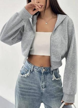Соп худи 🪐 Модель: 7020 🏷 Цена: 450 грн 🔥 ◾️Тканина: двонитка ◾️Цвета: черный,серый ◾️Размеры: 42-46(over size) Хит сезона укороченное худи с капюшоном идет на молнии с карманами. Манжет-серебряная. Уютная позиция для сочетания с любимыми джинсами/джоггерами или леггинсами.